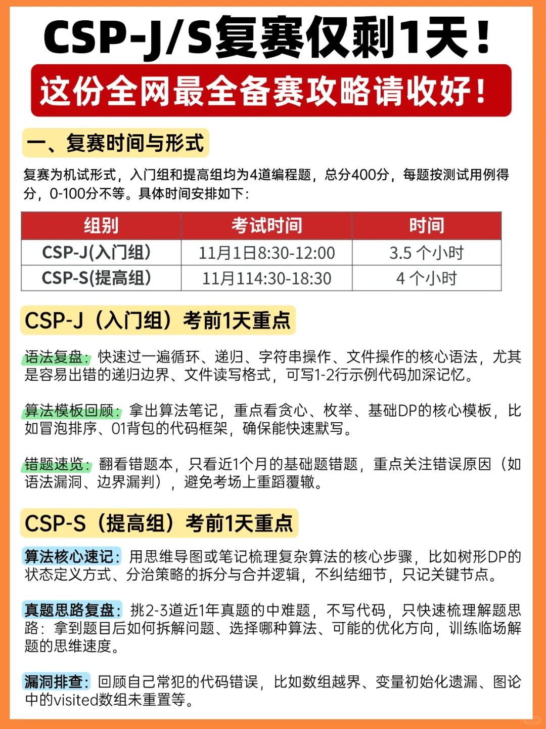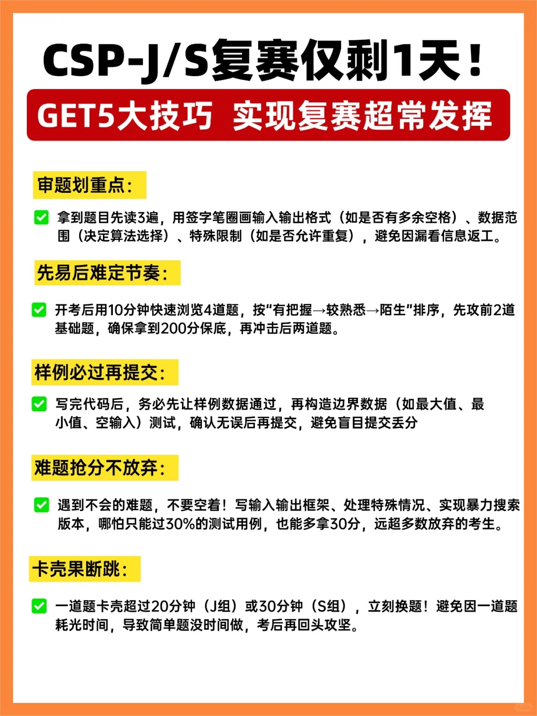 CSP只剩最后一天,这个时候挑灯夜战的意义已经不打了,做好以下3件事,可能比刷10道题更有用!