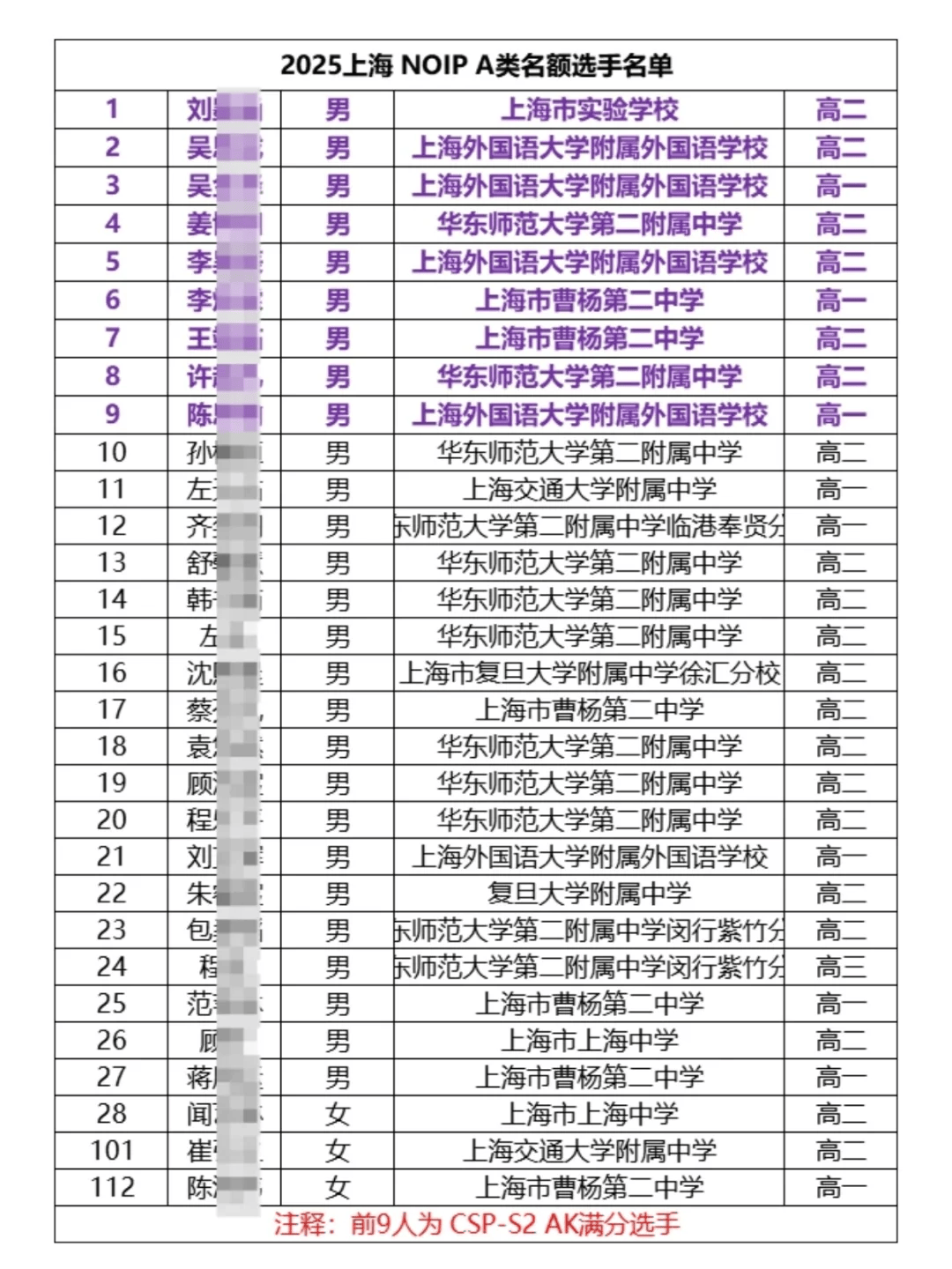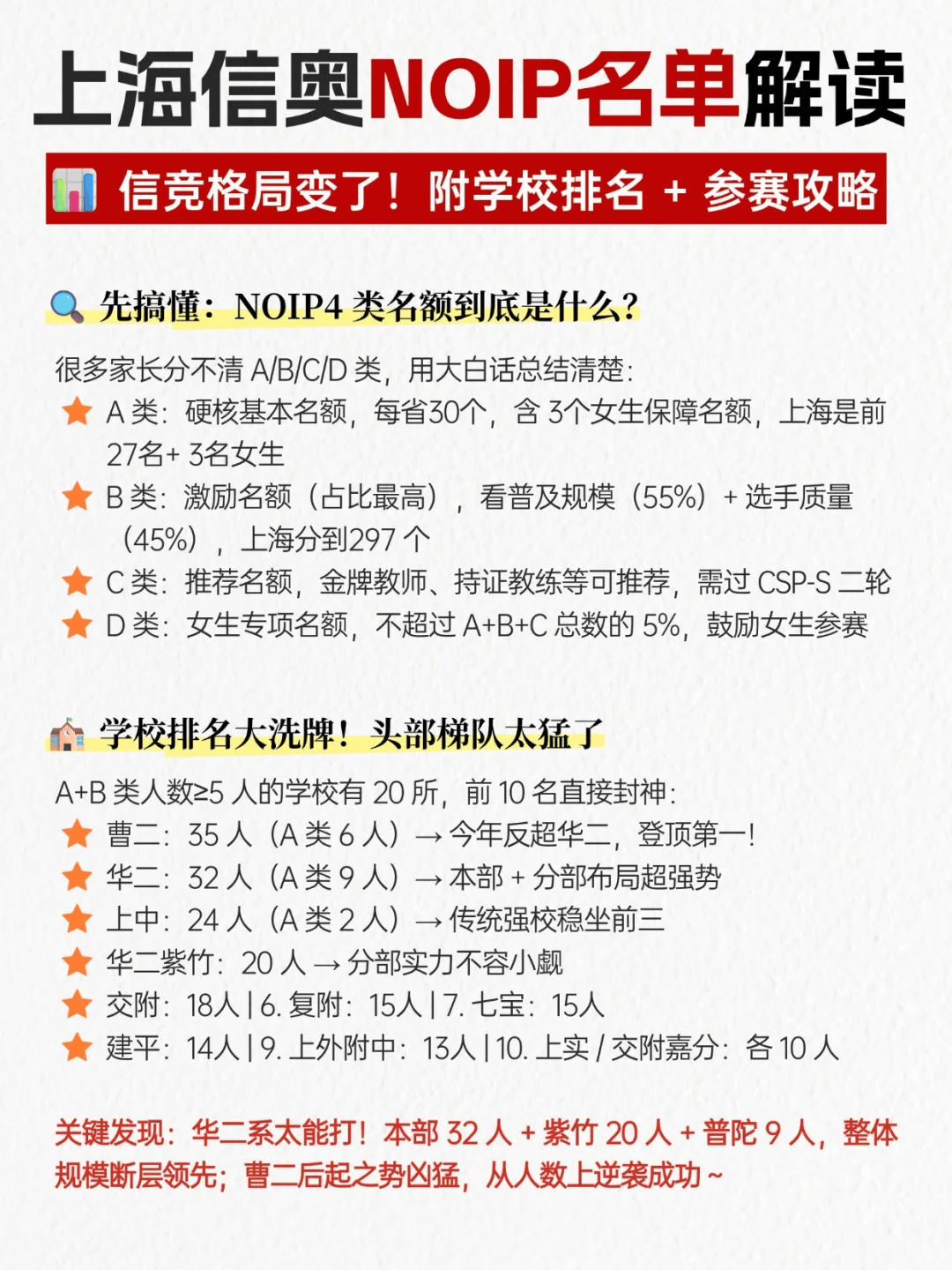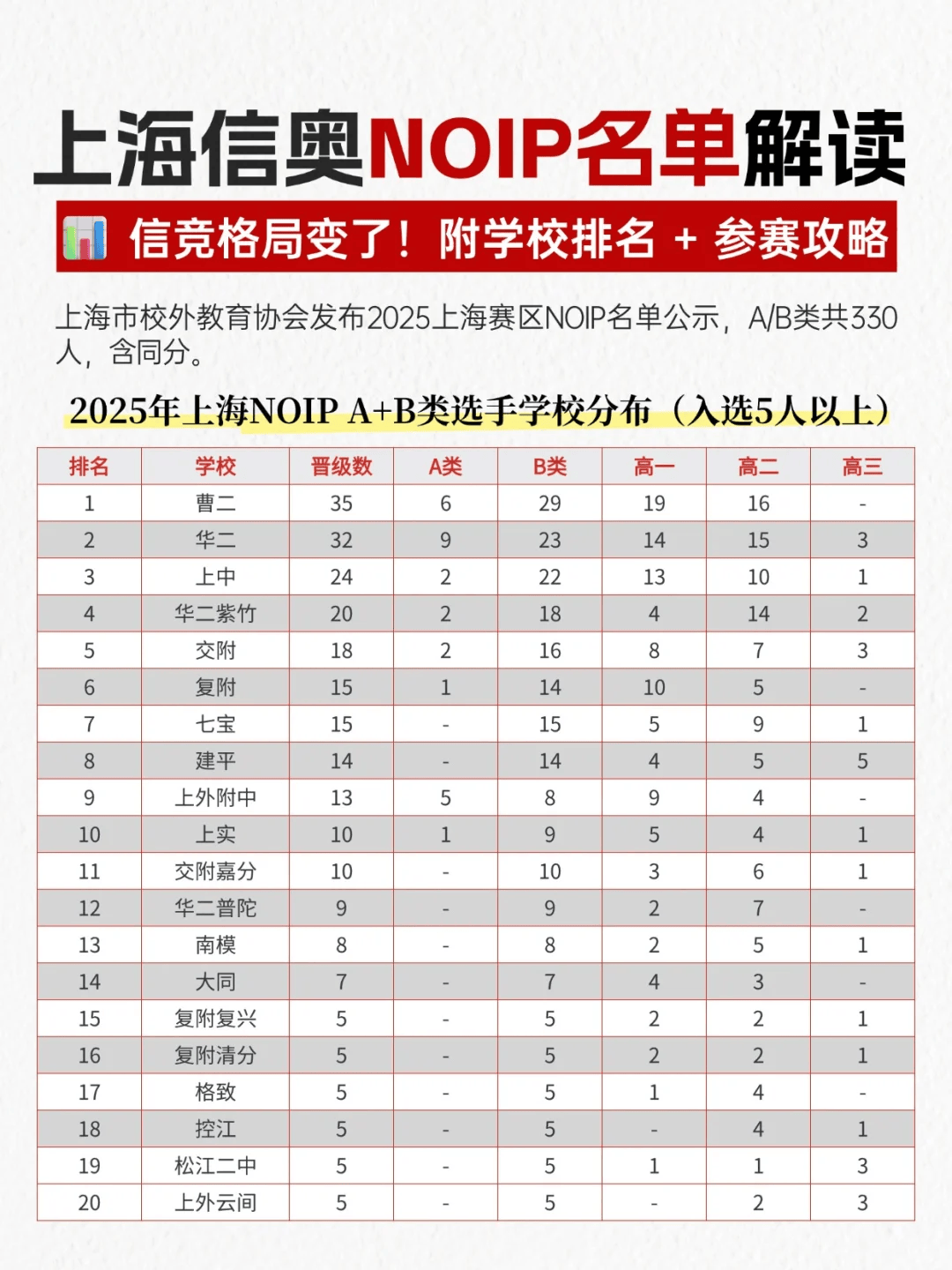 魔都信竞家长集合!2025上海NOIP参赛名单刚公示,356人拿到入场券(A+B类330人,C+D类26人),藏着超多关键信息,赶紧码住~