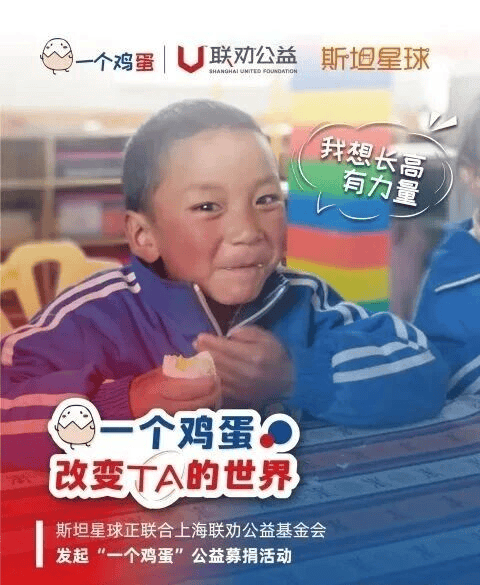 2022年,斯坦星球与联劝基金会合作,发起“一个鸡蛋”公益募捐,成功筹得45000元善款,专项用于保障重庆大顺乡中心幼儿园194名孩子一整年的鸡蛋供应,以实际行动守护偏远地区儿童的基本营养与健康。