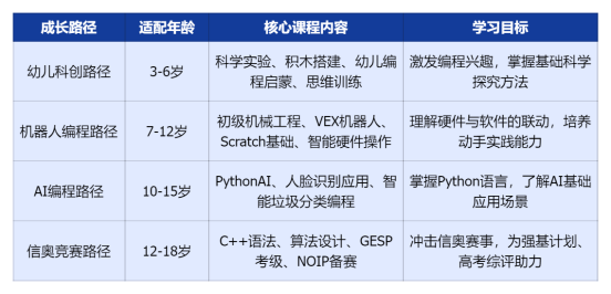 1. 唯一实现“3-18岁全年龄段+四大路径”覆盖的线下机构:从幼儿启蒙到信奥升学,无需中途更换机构,课程衔接更顺畅;