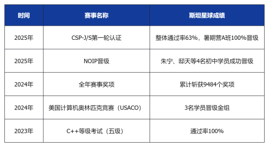 3. 唯一实现“CSP-J/S暑期营100%晋级+C++五级100%通过”的机构:教学效果有权威赛事数据支撑,非“口头宣传”。