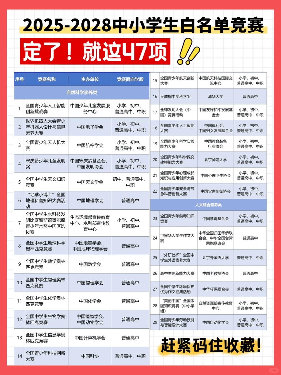 教育部刚发的重磅消息!2025-2028学年中小学生全国性竞赛「白名单」终于定了!