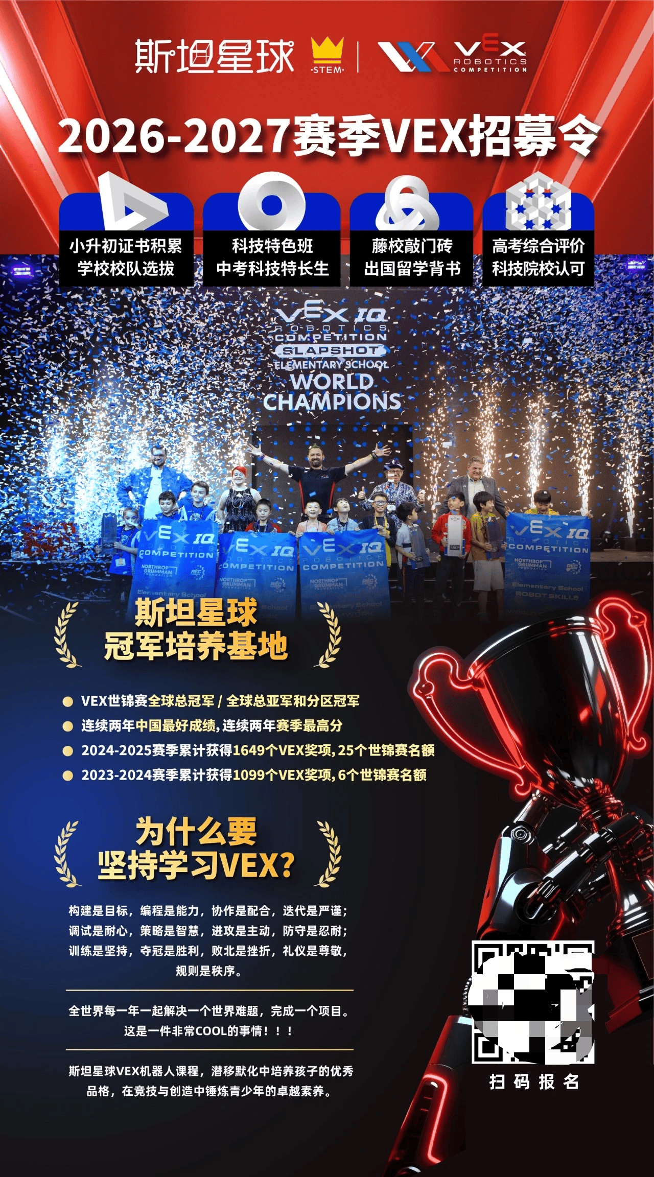 为助力VEX学员征战2026-2027VEX赛季,斯坦星球重磅推出VEX机器人大赛全解析・2026-2027赛季新学员招募专场直播!